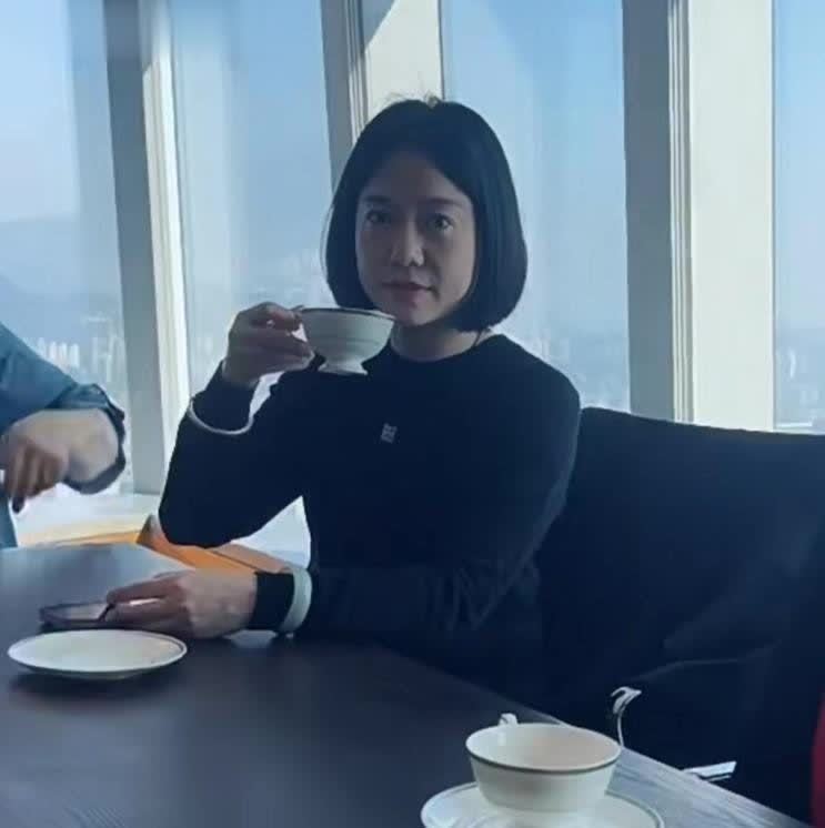 脱下大衣后,修身款式的黑色内搭,让翁帆显得更为低调朴素。配饰方面,她仅选择了一只翡翠手镯和素圈银镯,简约的装扮反而更衬其气质。