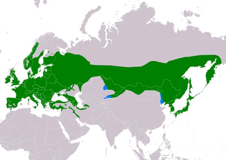 △ 北长尾山雀的分布,蓝色表示非繁殖地区