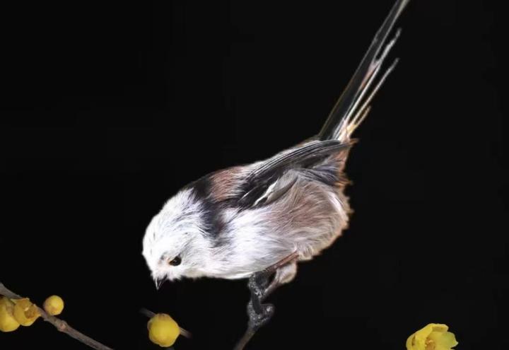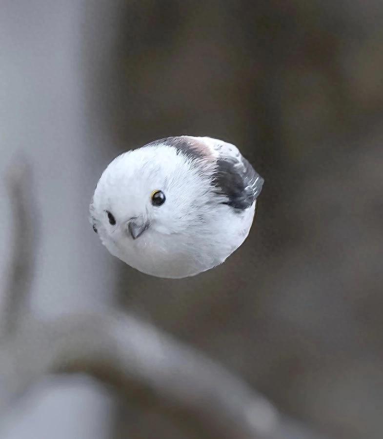 这是一只冬季的北长尾山雀,它在飞行过程中收起翅膀向下俯冲时被抓拍了,这一瞬间将它的可爱体现的淋漓尽致,给摄影师点个赞。
